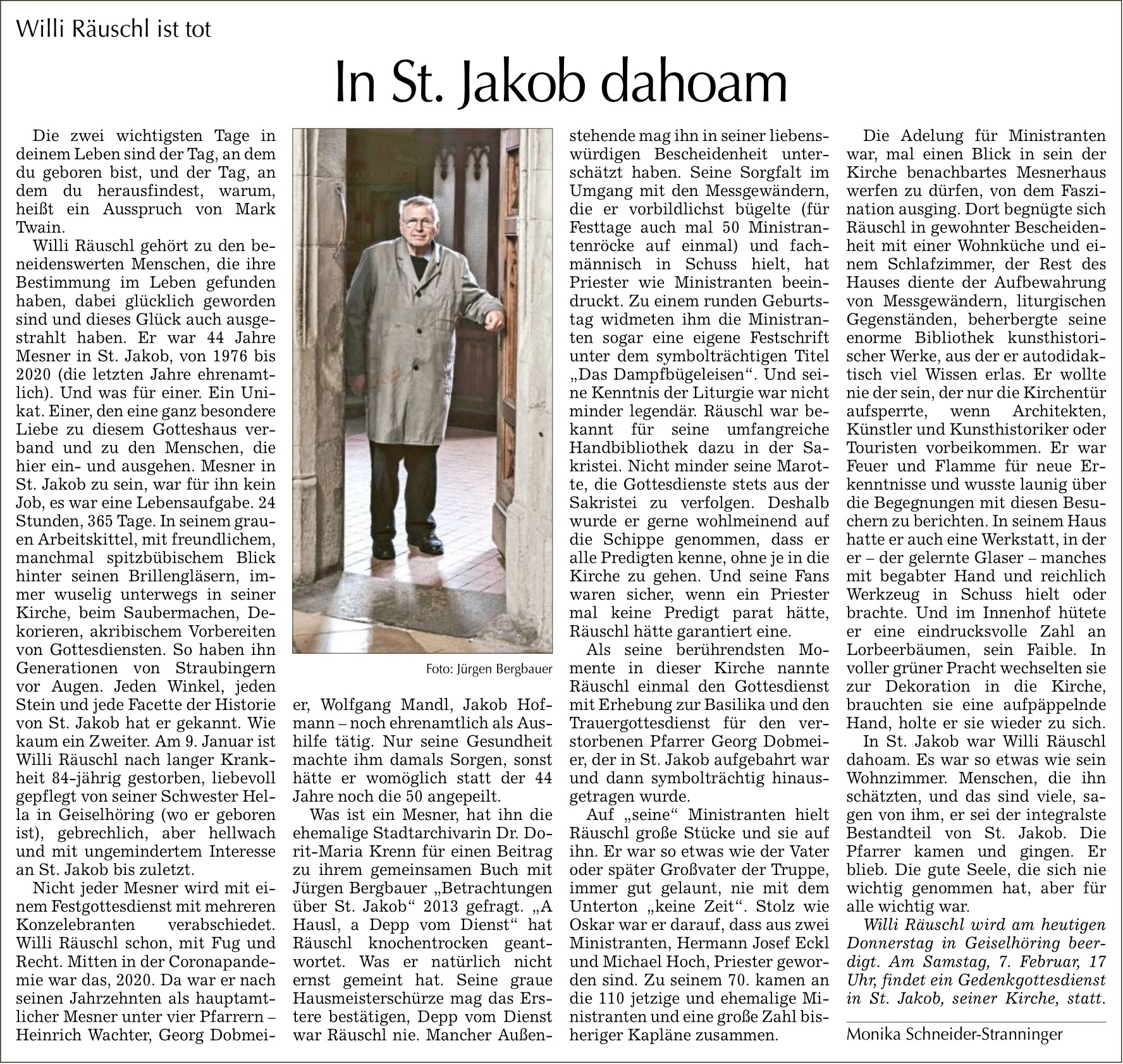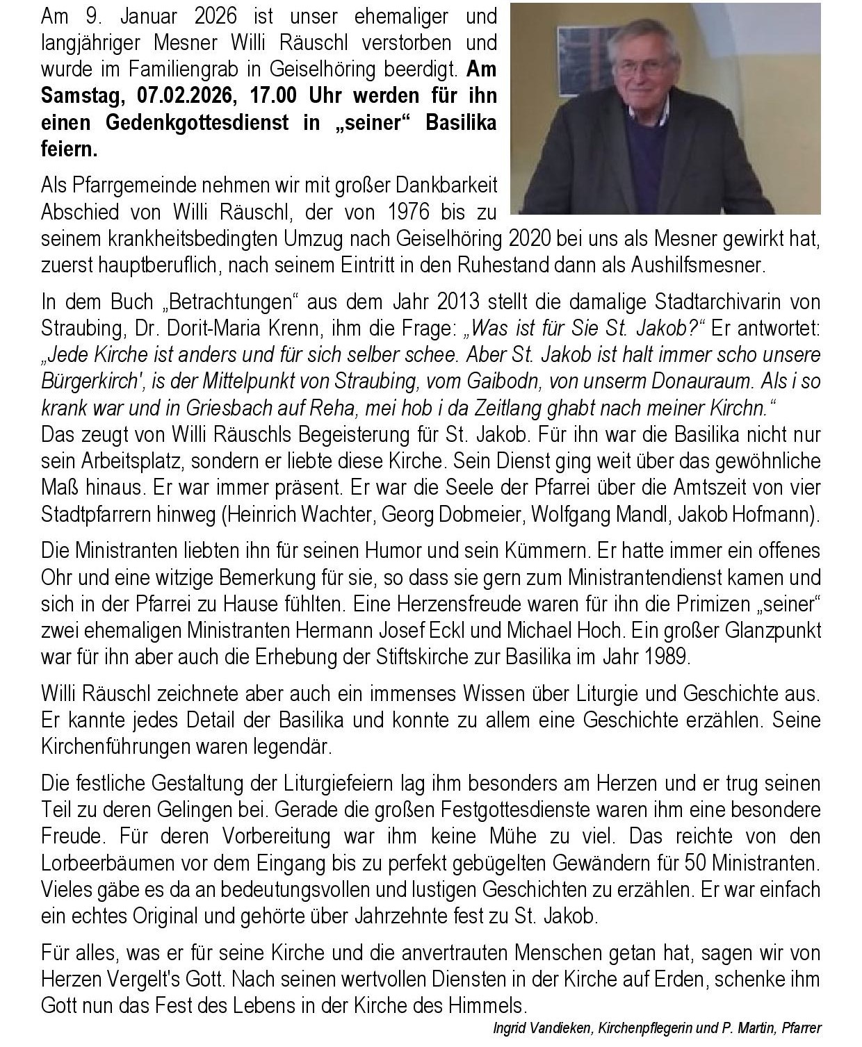 Abschied von unserem ehemaligen Mesner Willi Räuschl